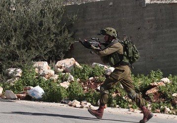 Israeli soldier aims his weapon at Palestinian protesters during clashes after a protest against the expanding of Jewish settlements in Kufr Qadoom village, near the West Bank city of Nablus.847/980