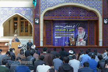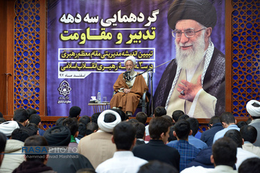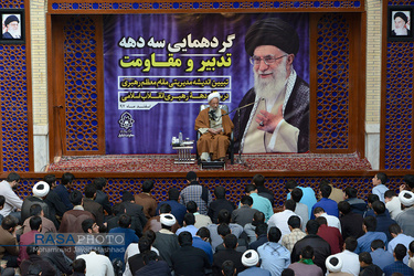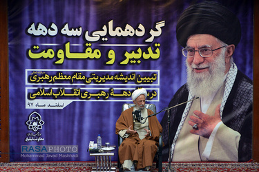 Gathering on "3 Decades Prudence and Resistance" (Explaining the Management Thoughts of the Supreme Leader in Three Decades of the Islamic Revolution) with the presence of Ayatollah Mesbah Yazdi was held in Mashad, Iran.