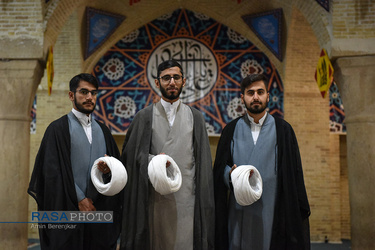 دانلود همه تصاویر Turbans Wearing tradition for Shiraz Seminary clergies in Hazrat Ahmad ibn Musa holy shrine