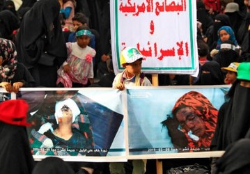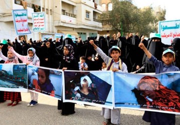 Yemeni children and female protesters gather during a rally in the capital Sana'a against raids by the Saudi-led airstrikes in the Yemeni province of Hajjah. Twelve children and 10 women have been killed by strikes in Yemen's Northern province of Hajjah over the weekend.