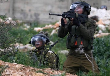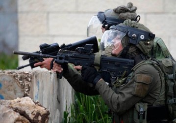 Israeli soldiers hold their weapons during clashes with Palestinian protesters after a protest against the expanding of Jewish settlements in Kufr Qadoom village near the West Bank city of Nablus.