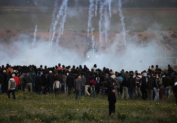 Israeli border forces opened fire and shot teargas at protesters killing two Palestinians and injuring 55 more at the Israel-Gaza border during the Great March of Return protests on Friday, according to medical sources.