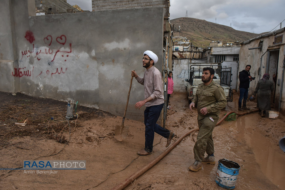 Clergymen voluntarily help people in different areas hit by flood in Iran