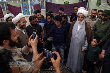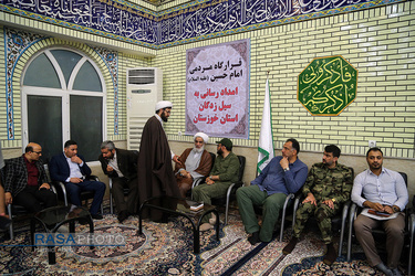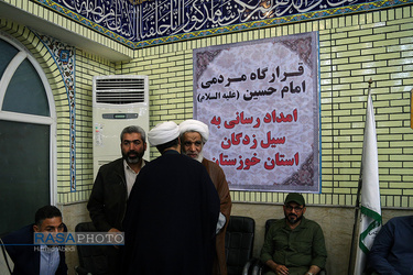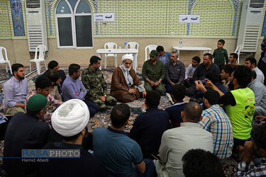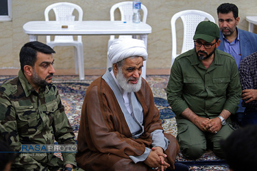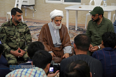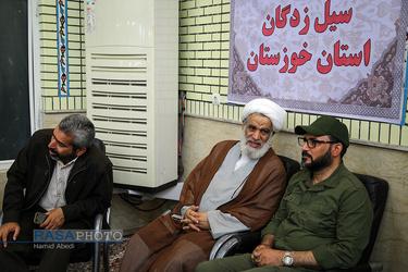 دانلود همه تصاویر Ayatollah Kabi met with members of Iraqi Popular Mobilization Forces from "Harakat Hezbollah al-Nujaba" movement who came in flood-hit province of Khuzistan, Iran, to help people