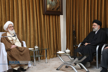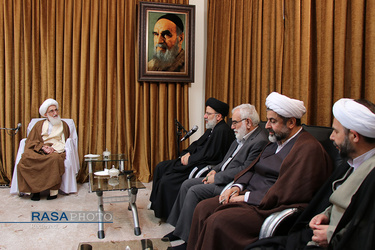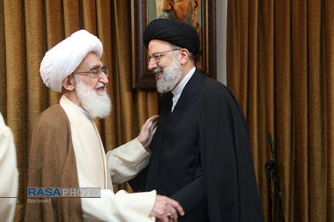 دانلود همه تصاویر Hujjat al-Islam Raisi, Chief Justice of Iran, met with Ayatollah Nouri Hamedani in Qom