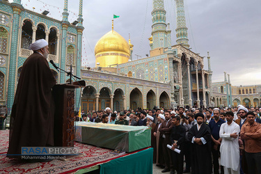 Funeral procession in holy shrine of Lady Masumeh in Qom for two Holy Shrine Defenders who martyred in Syria