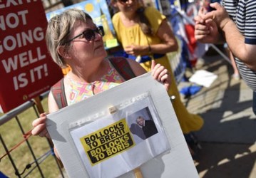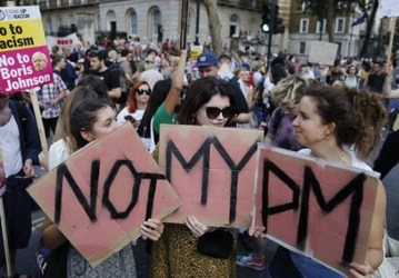 Hundreds of demonstrators gathered in central London to protest against Britain's newly appointed Prime Minister Boris Johnson.