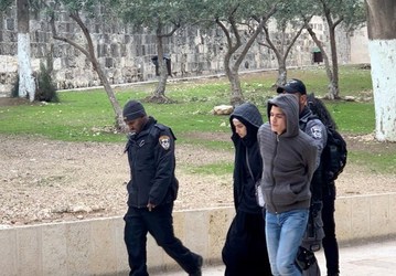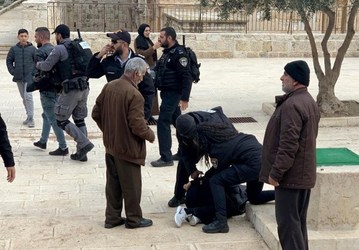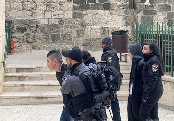 Israeli occupation forces arrested five Palestinians near the Al-Rahma Gate in the Al-Aqsa Mosque compound. [PHOTOS]