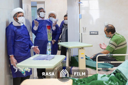 اهدای گل به بیماران و کادر درمانی بیمارستان کامکار