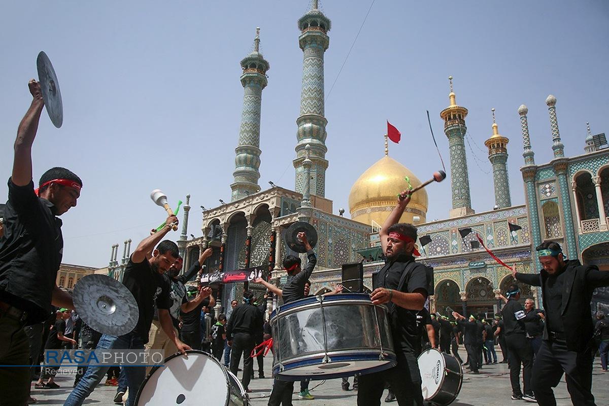 دستههای عزاداری در روز عاشورای حسینی (علیهالسلام) با حضور در حرم مطهر بانوی کرامت به عزاداری و سوگواری پرداختند.