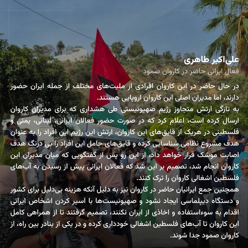 این فعال ایرانی حاضر در کاروان صمود در رابطه با حضور ایرانیان و هشدار ارتش رژیم صهیونیستی گفت:
