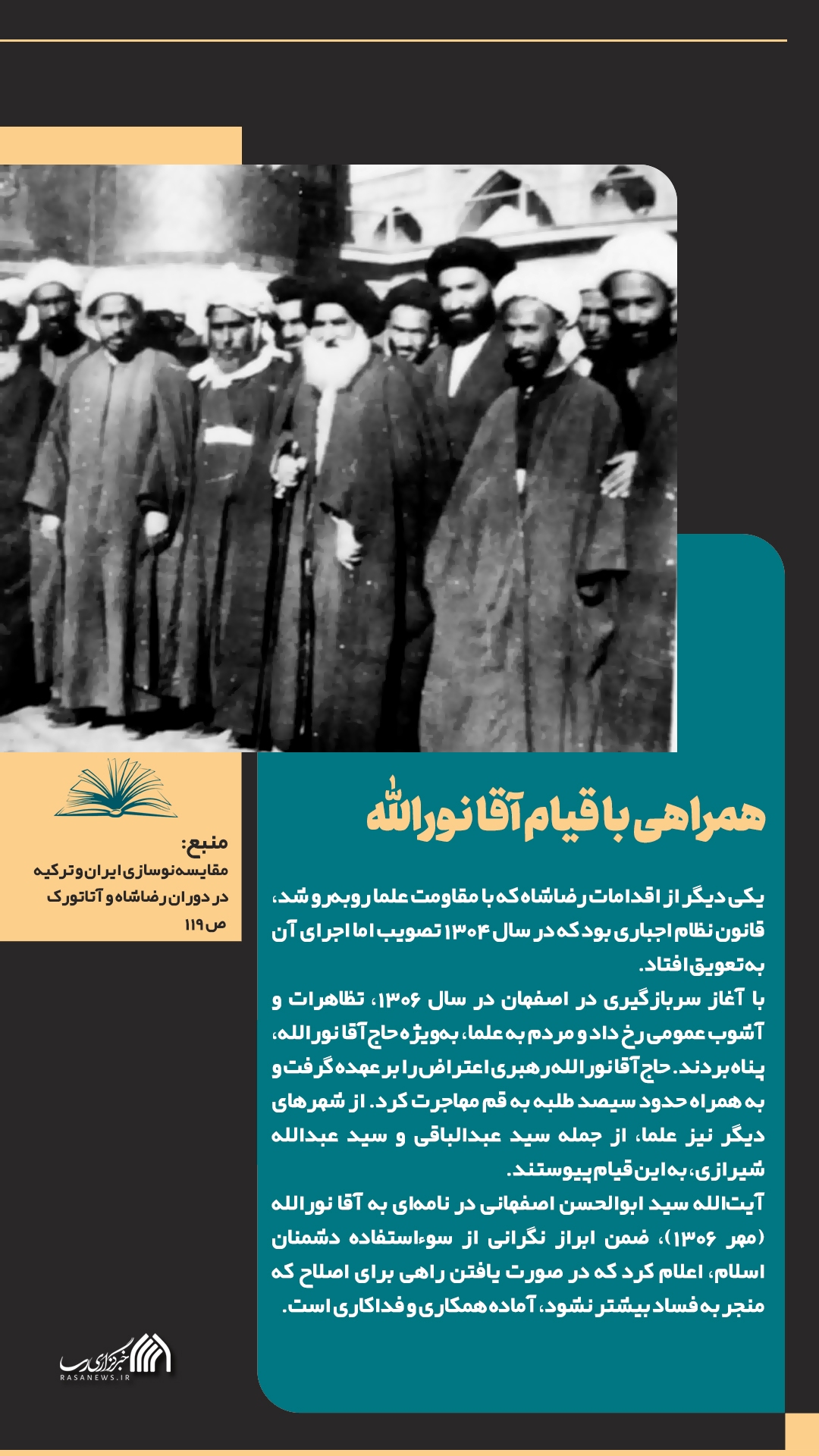آیتالله سیدابوالحسن اصفهانی (ه) در دوران سیاستهای سرکوبگرایانه رضاشاه، یکی از ستونهای مقاومت دینی بود. ایشان با صدور فتاوای تاریخی، مبارزه را به واجب عینی تبدیل کردند و با هدایت طلاب و حمایت از تشکلهای مذهبی، در حفظ دین در برابر تجدد اجباری نقشی کلیدی ایفا نمودند. الگوی عملی ایشان، فقاهت متعهد و اولویت دادن به روشنگری دینی بود.