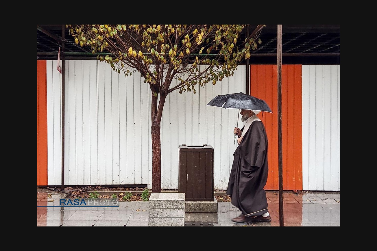 حال و هوای بارانی طلابِ در حال و رفت و آمد به جلسات درس صحنههای جذابی ایجاد کرده است. | عکاسی با موبایل