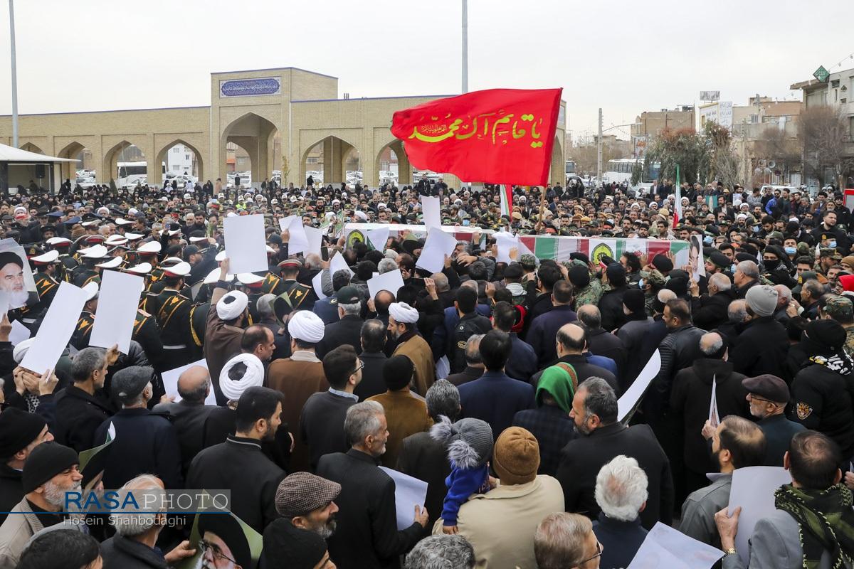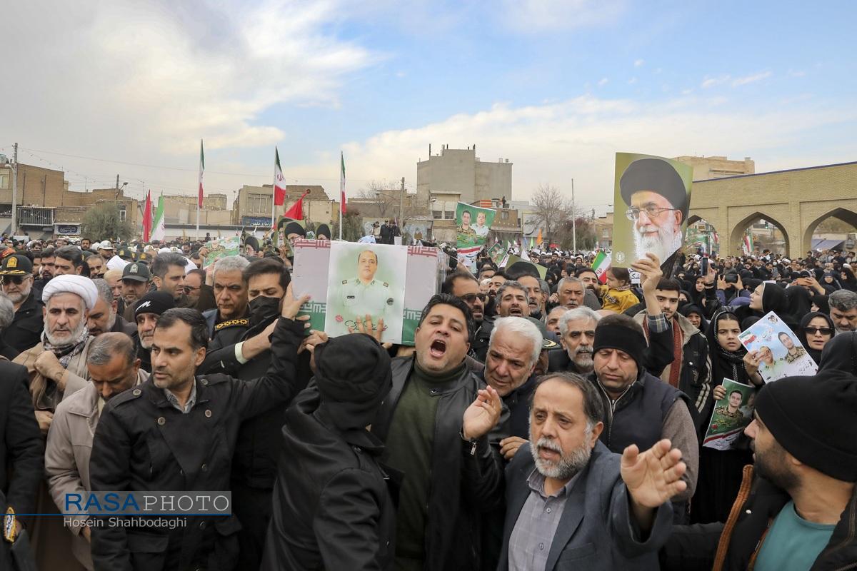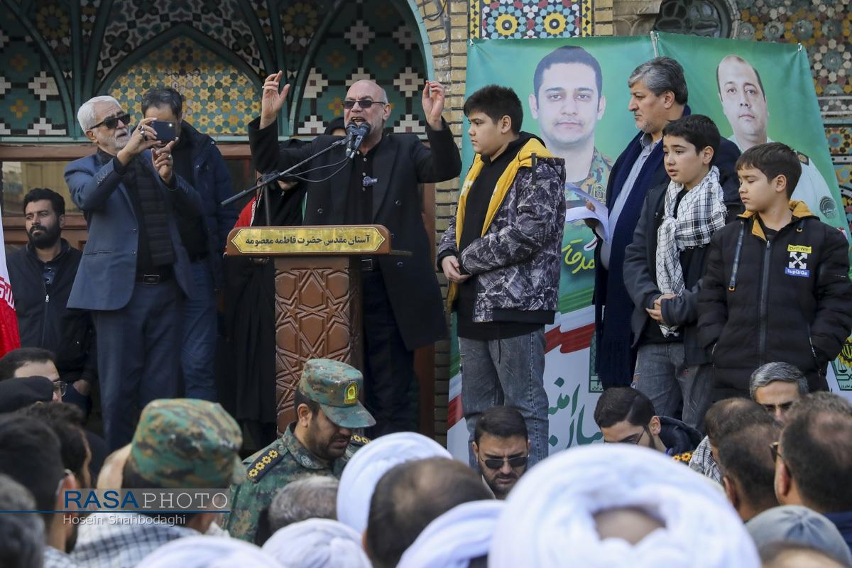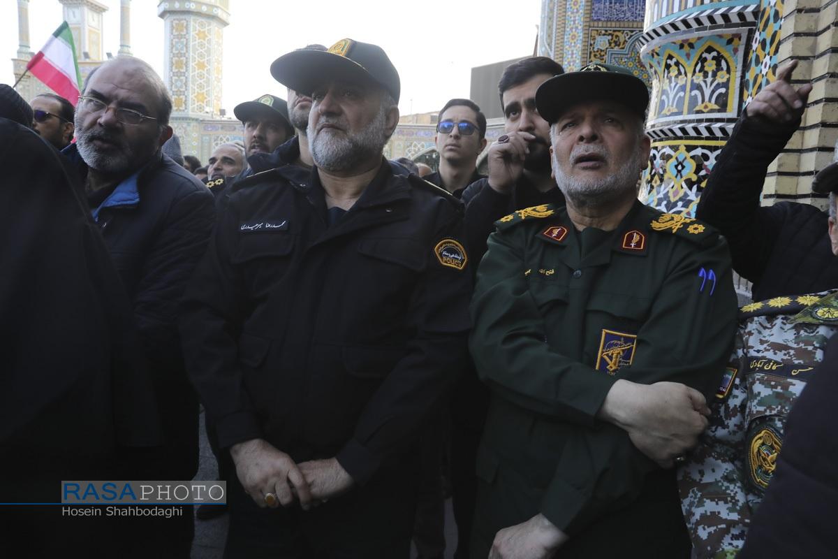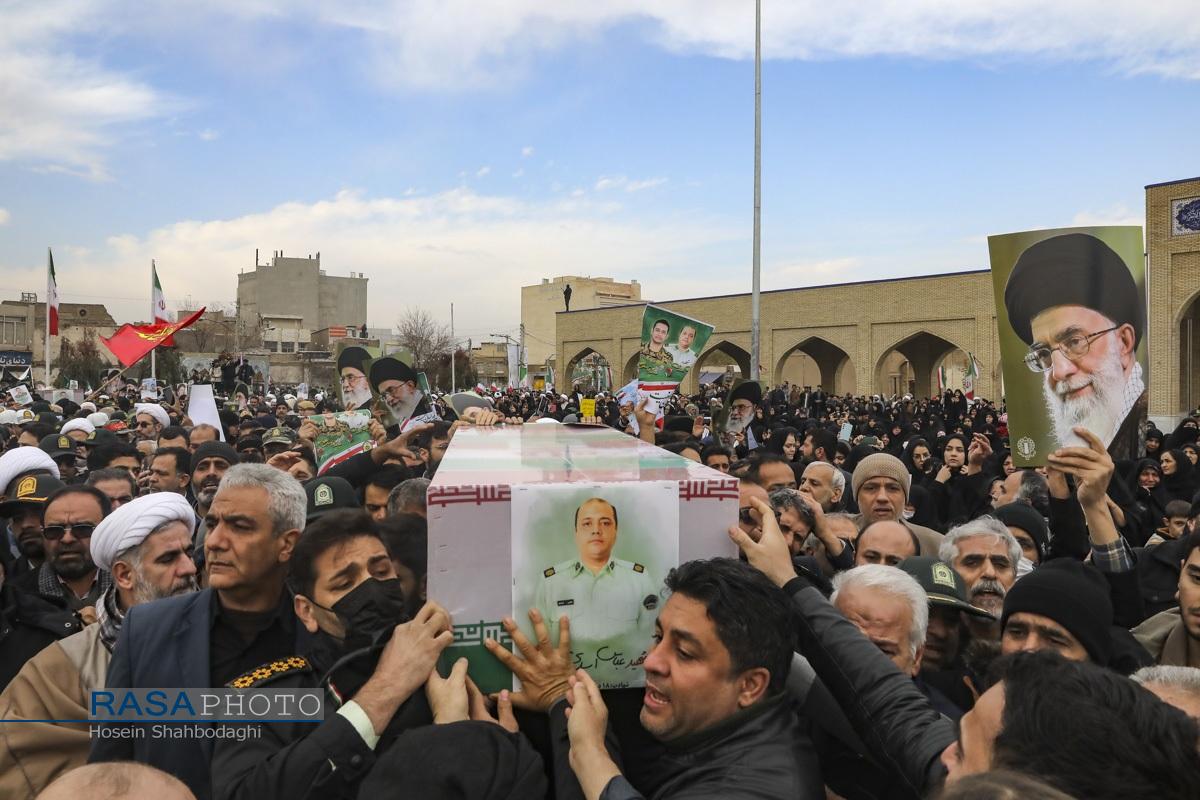 مراسم باشکوه تشییع پیکر دو شهید مدافع امنیت فراجا با حضور چشمگیر مردم مؤمن و انقلابی قم در حالی برگزار شد که، دشمن صهیونیستی در روزهای اخیر با تحریک مزدوران وحشی خود و با تخریب اموال عمومی و داراییهای مردم تلاش در برهم زدن اتحاد ملت بزرگ ایران اسلامی داشت.