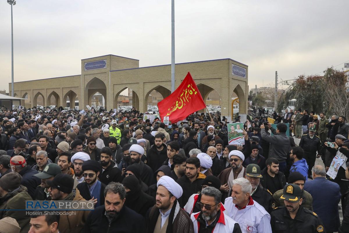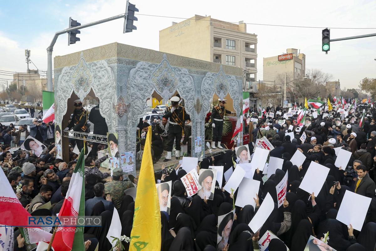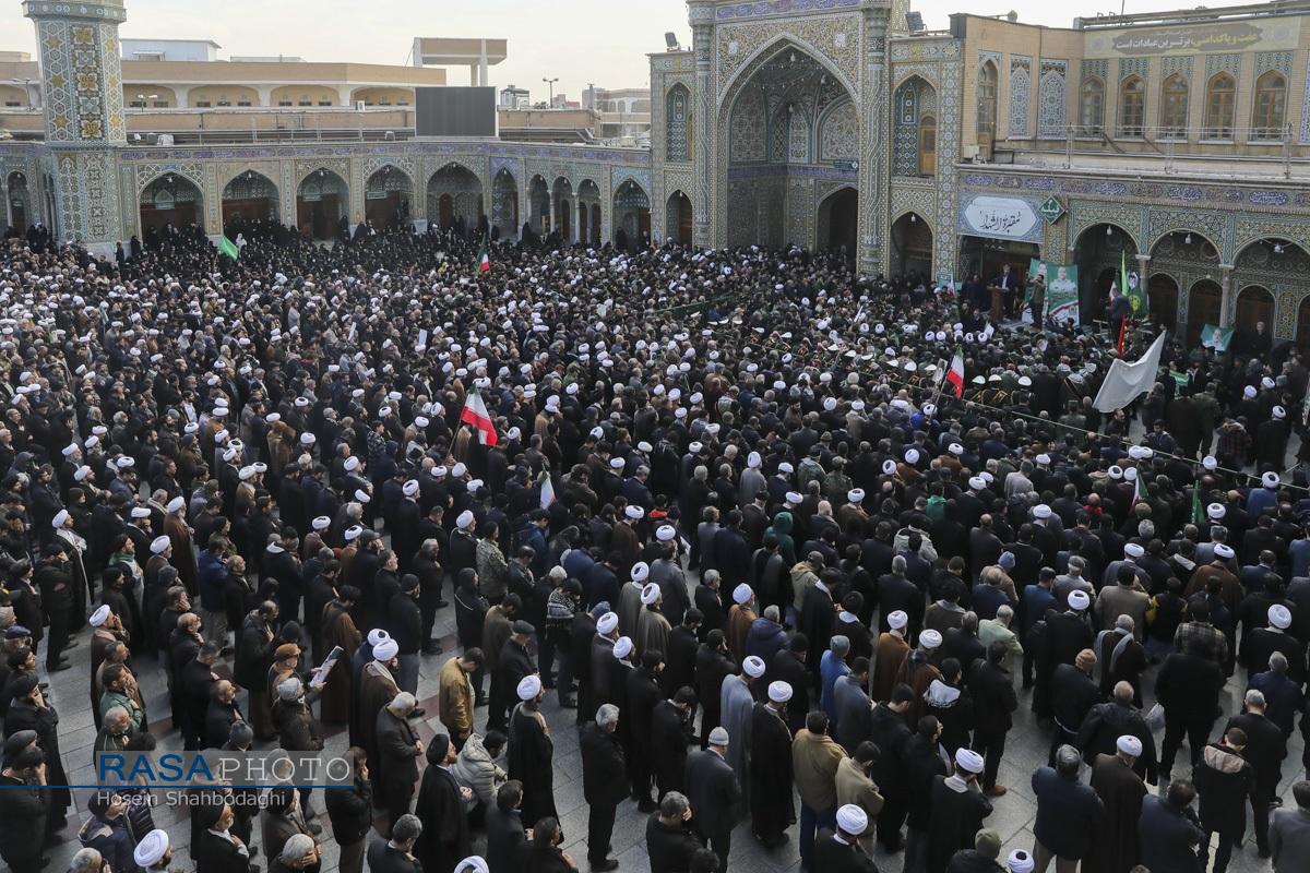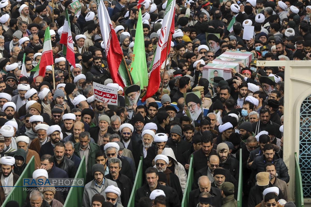مراسم باشکوه تشییع پیکر دو شهید مدافع امنیت فراجا با حضور چشمگیر مردم مؤمن و انقلابی قم در حالی برگزار شد که، دشمن صهیونیستی در روزهای اخیر با تحریک مزدوران وحشی خود و با تخریب اموال عمومی و داراییهای مردم تلاش در برهم زدن اتحاد ملت بزرگ ایران اسلامی داشت.