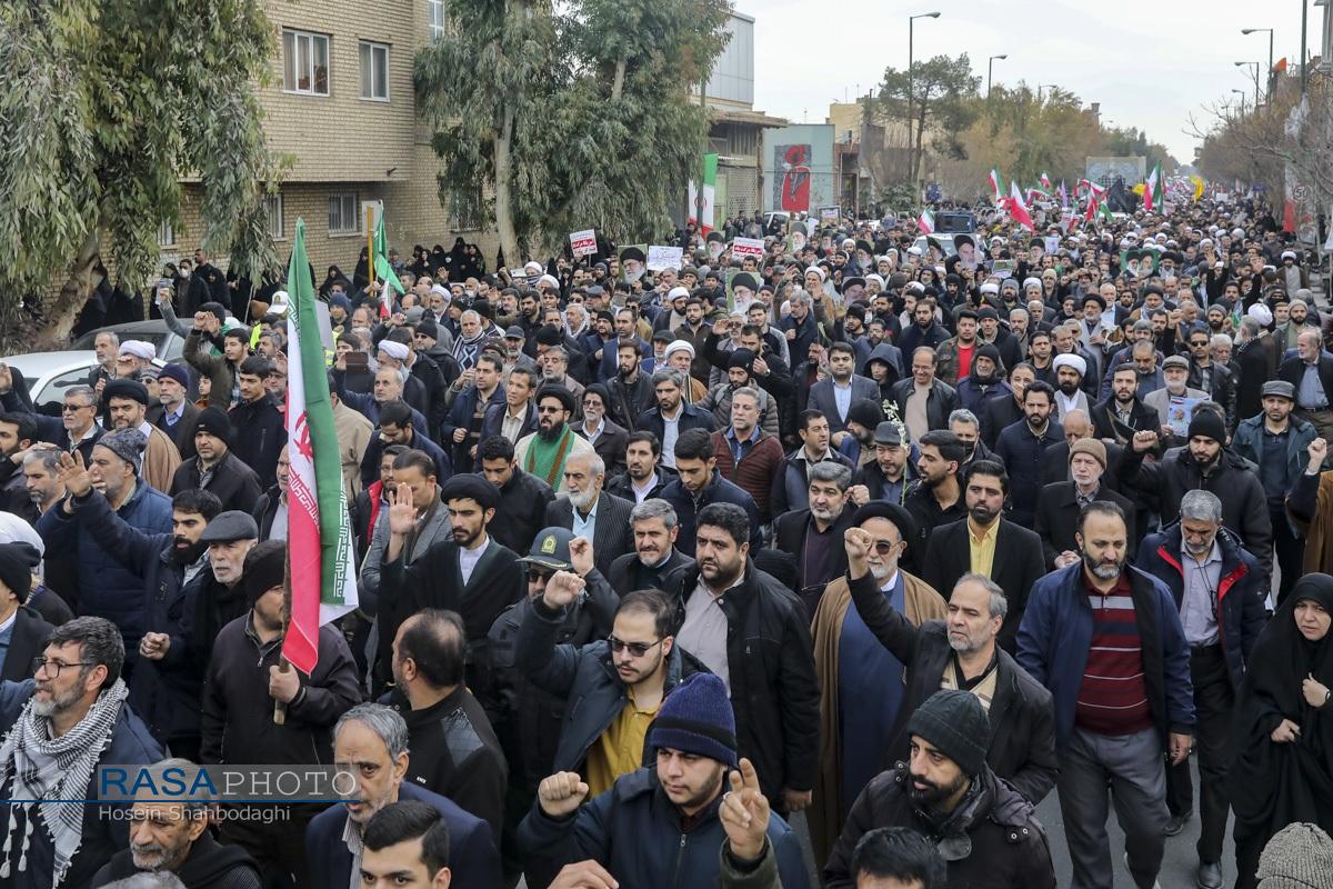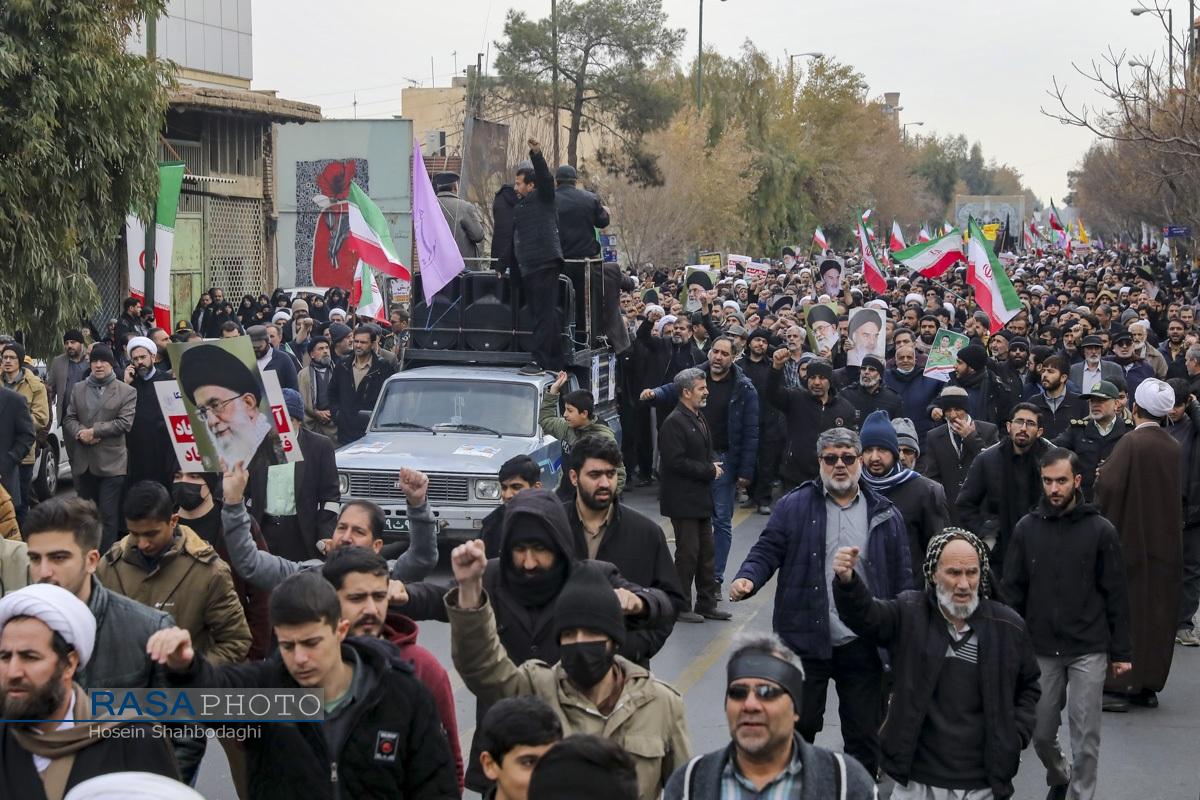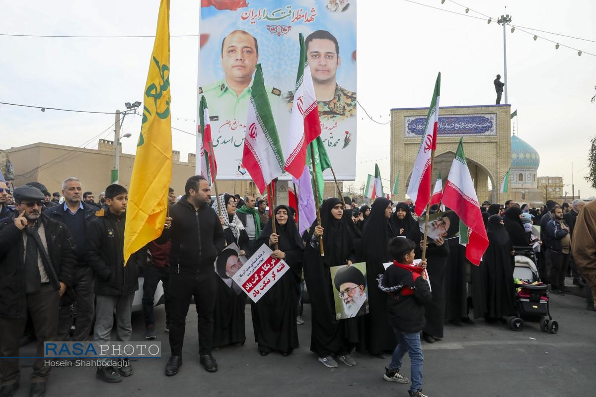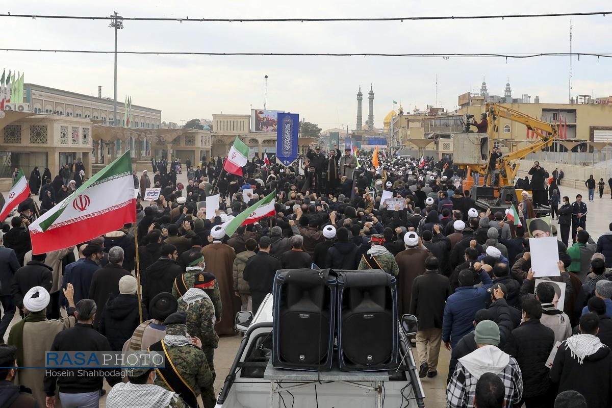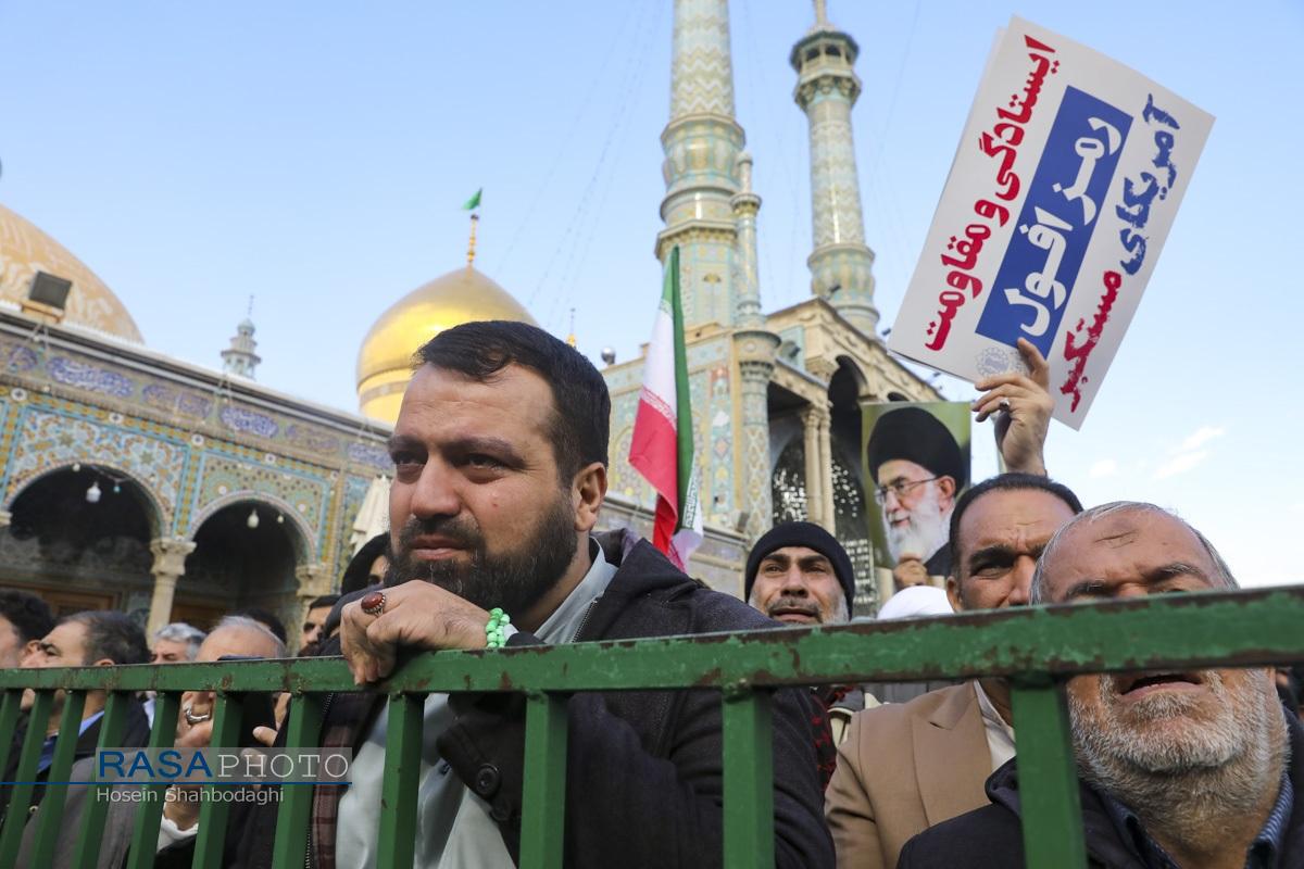 مراسم باشکوه تشییع پیکر دو شهید مدافع امنیت فراجا با حضور چشمگیر مردم مؤمن و انقلابی قم در حالی برگزار شد که، دشمن صهیونیستی در روزهای اخیر با تحریک مزدوران وحشی خود و با تخریب اموال عمومی و داراییهای مردم تلاش در برهم زدن اتحاد ملت بزرگ ایران اسلامی داشت.