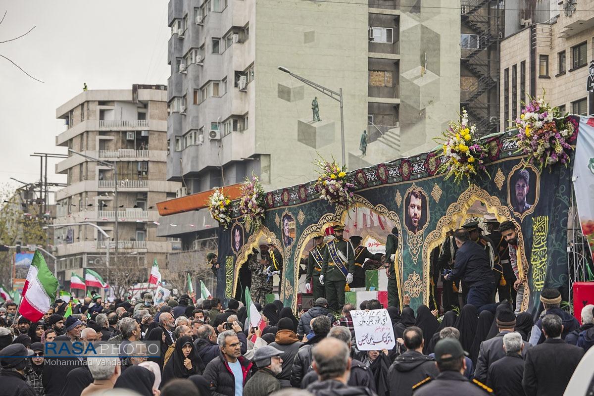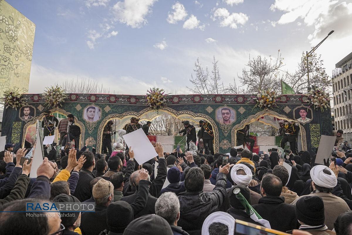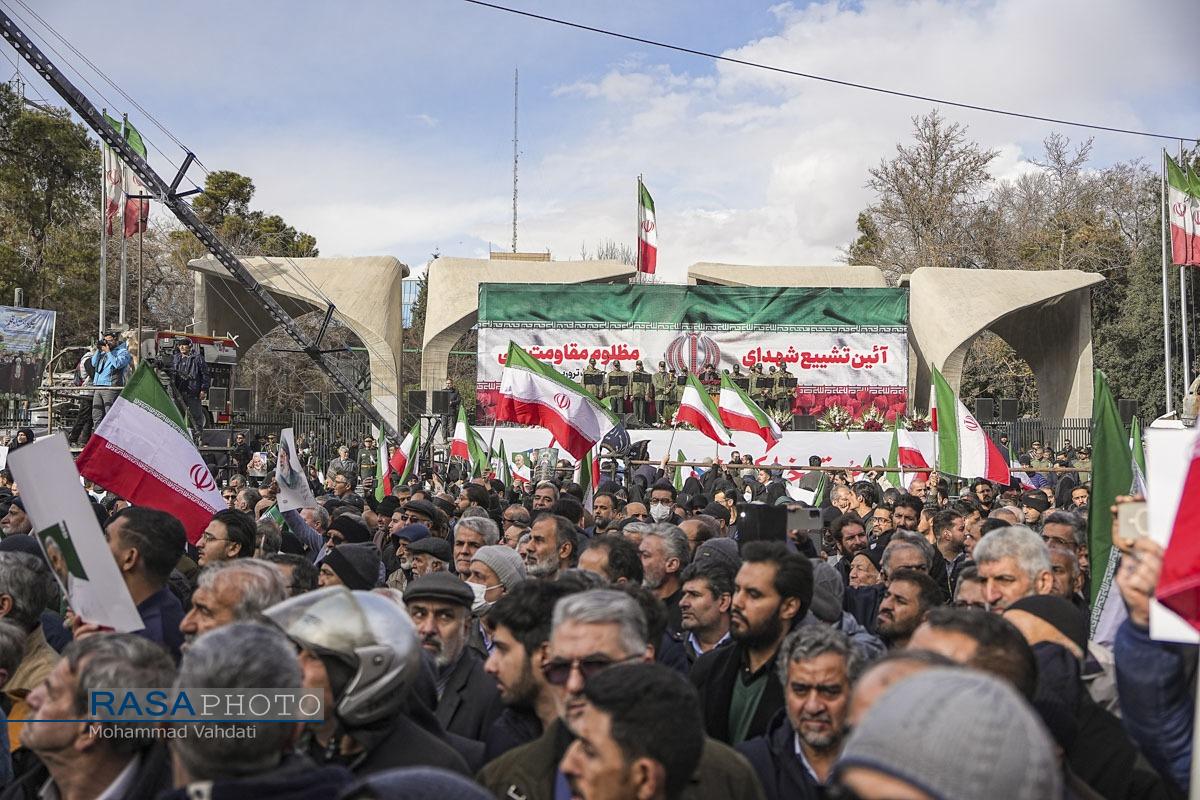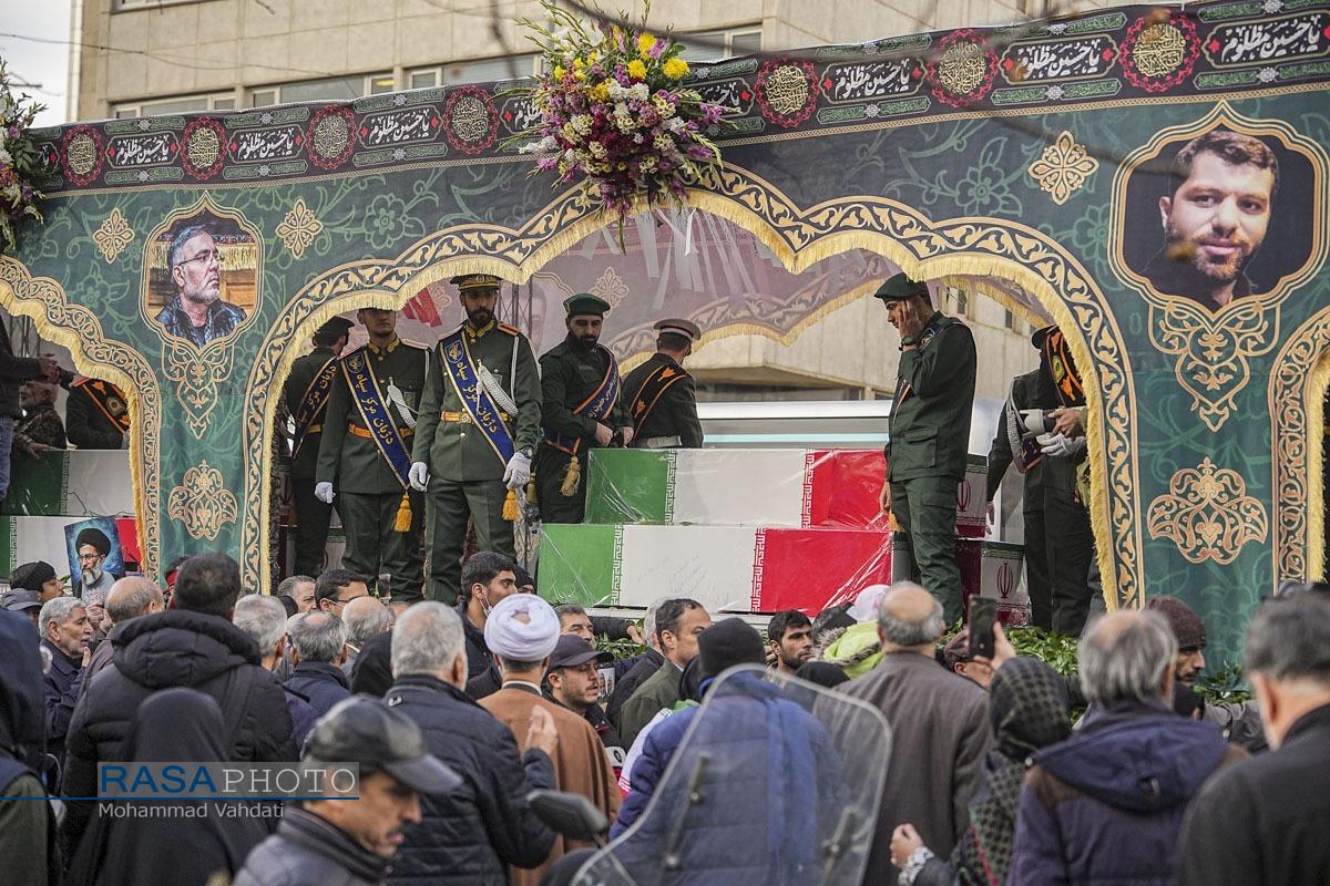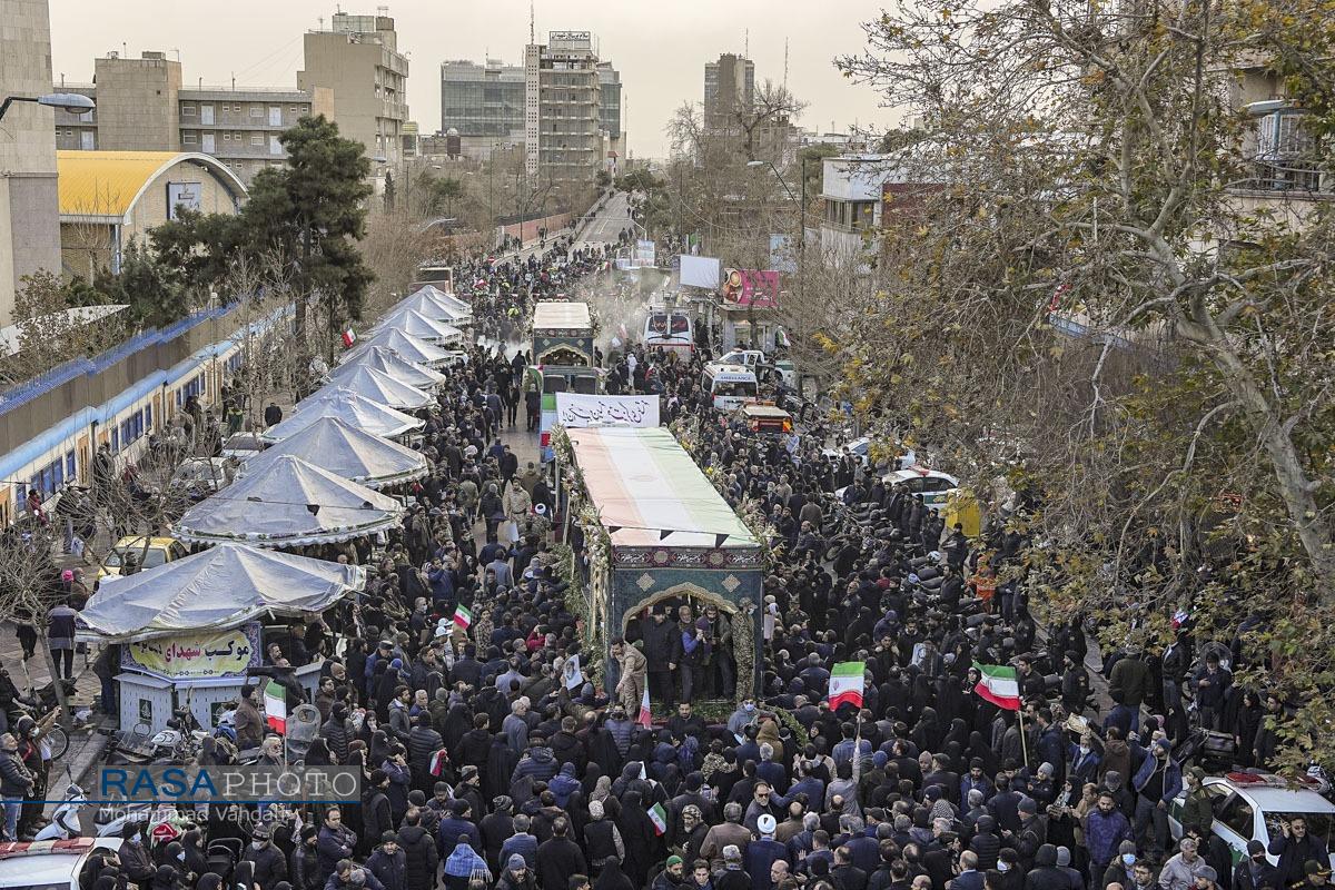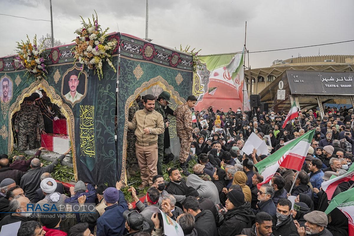 مراسم تشییع پیکرهای پاک شهدای مظلوم حافظ امنیت که توسط تروریستهای اغتشاشگر آمریکایی اسرائیلی در حوادث اخیر به خیل عظیم شهدا پیوسند با حضور گسترده اقشار مختلف مردم در تهران برگزار شد.