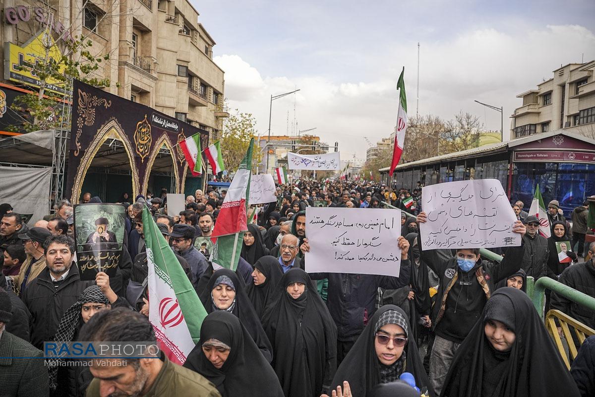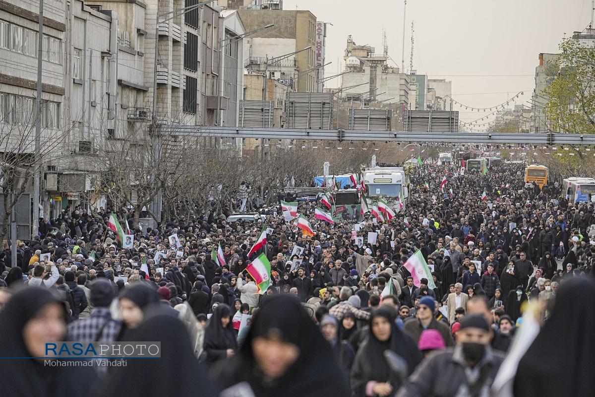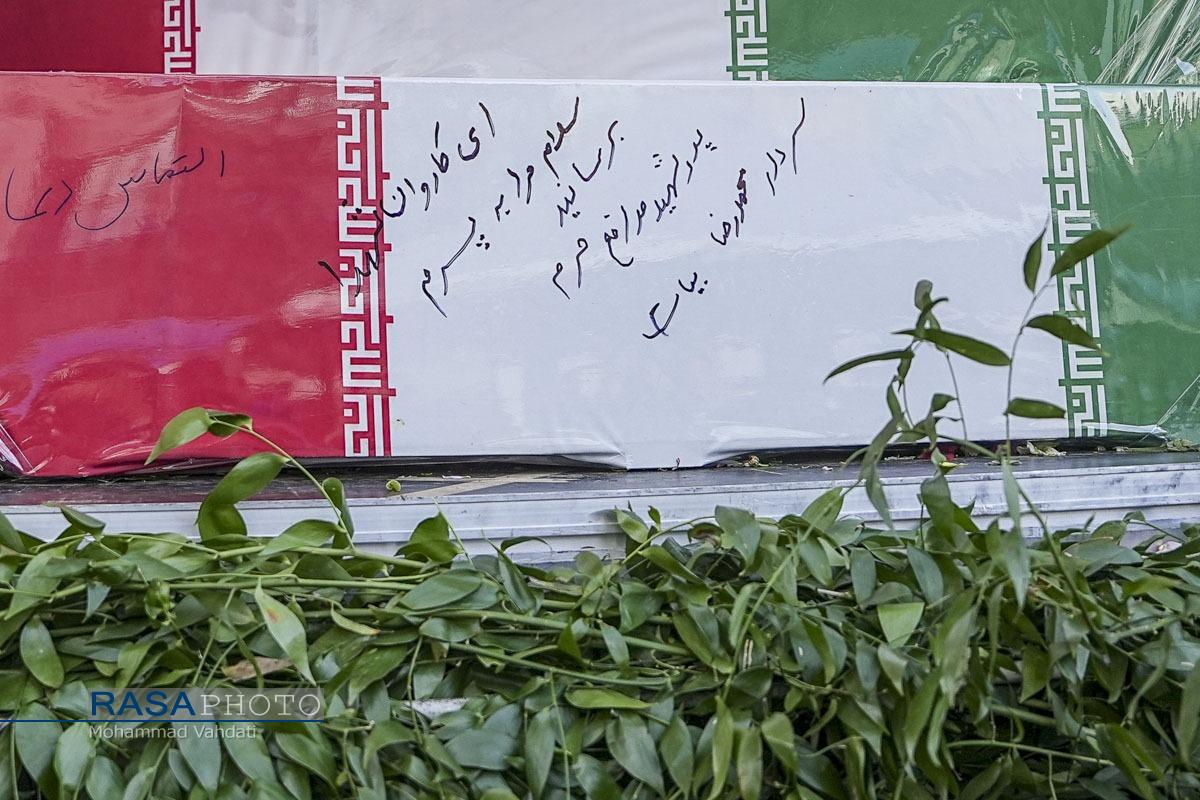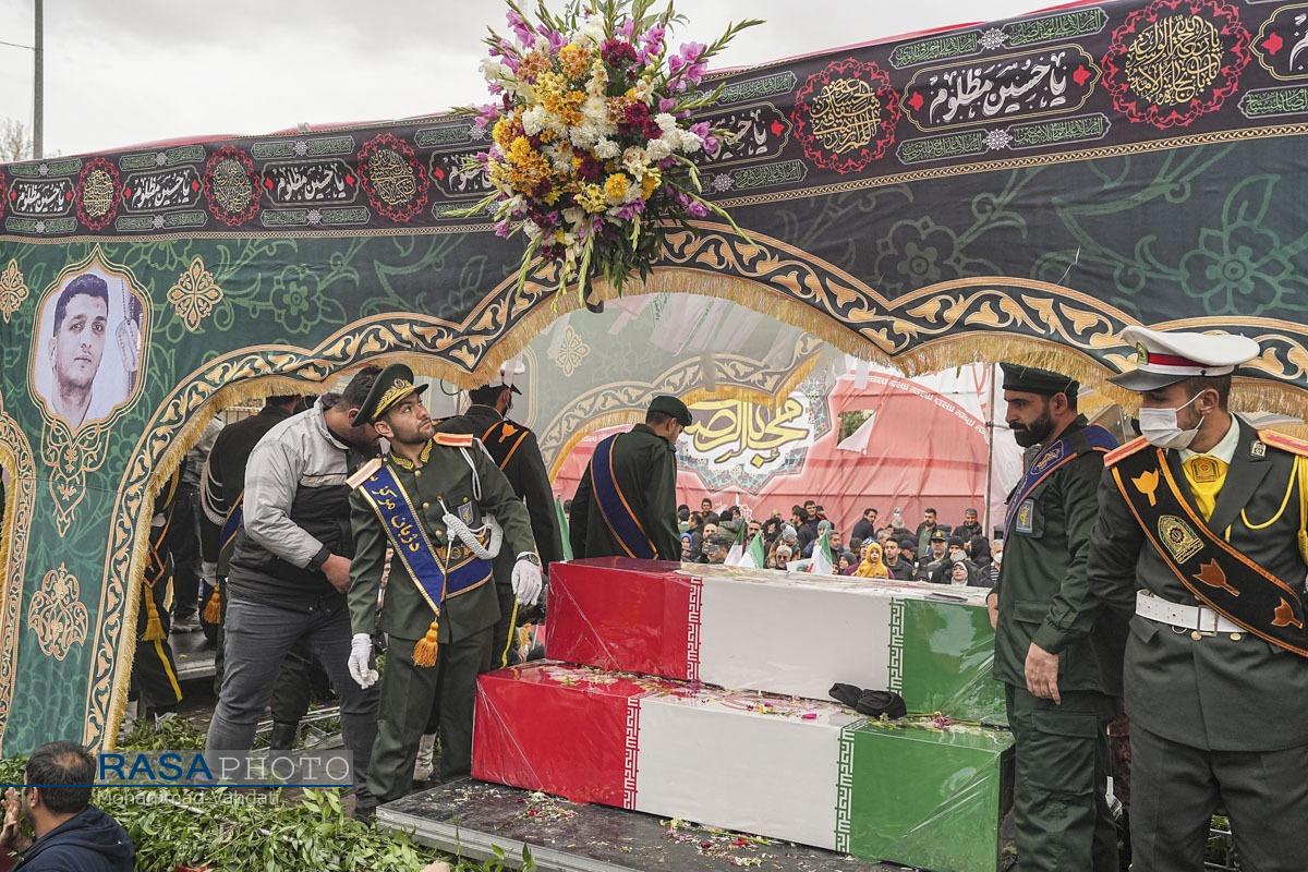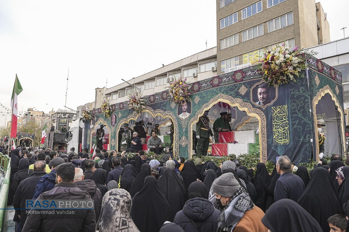 مراسم تشییع پیکرهای پاک شهدای مظلوم حافظ امنیت که توسط تروریستهای اغتشاشگر آمریکایی اسرائیلی در حوادث اخیر به خیل عظیم شهدا پیوسند با حضور گسترده اقشار مختلف مردم در تهران برگزار شد.