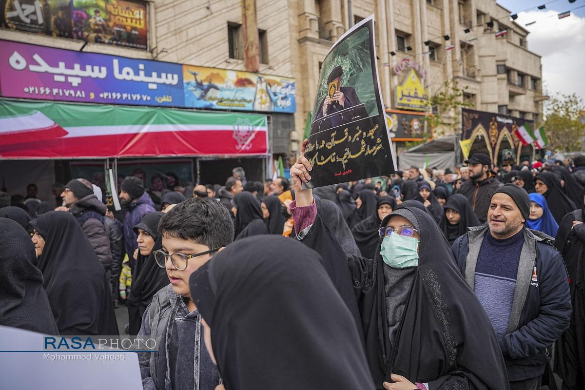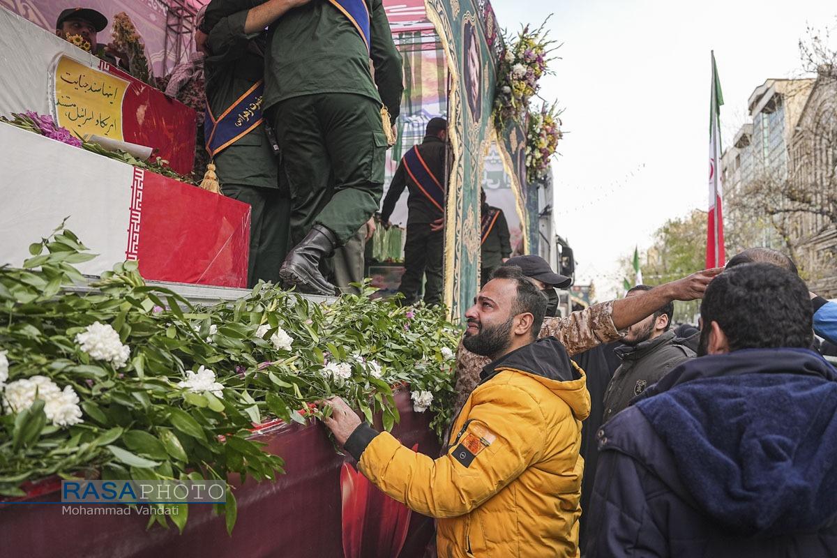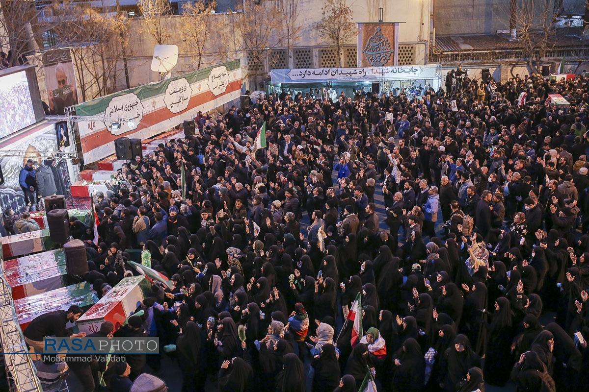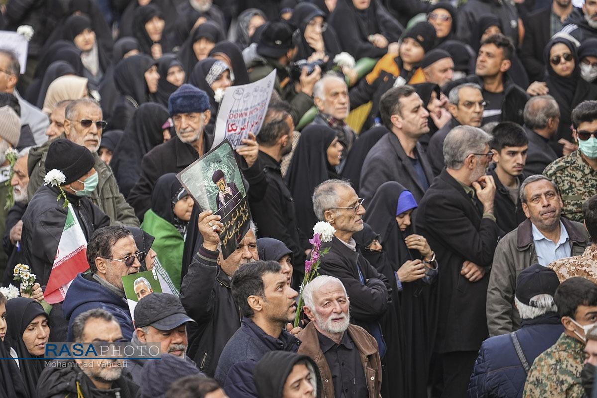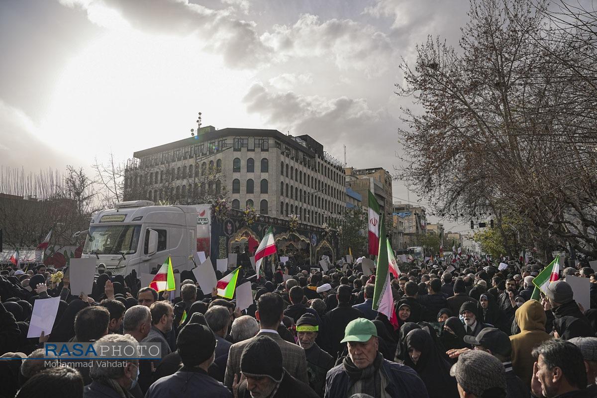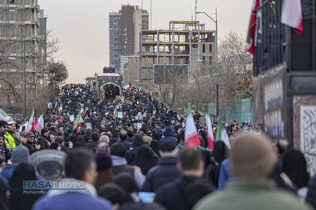 مراسم تشییع پیکرهای پاک شهدای مظلوم حافظ امنیت که توسط تروریستهای اغتشاشگر آمریکایی اسرائیلی در حوادث اخیر به خیل عظیم شهدا پیوسند با حضور گسترده اقشار مختلف مردم در تهران برگزار شد.